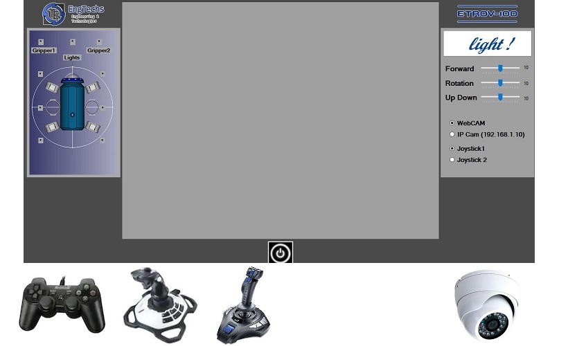 Specifications: ETROV100-light Control Software allows you to control an ROV via your PC and on-board Arduino board using an ordinary Joystick.